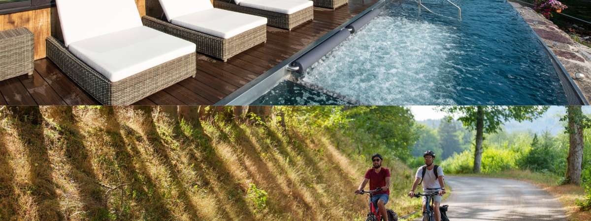 Sich ein Tag Zeit nehmen um die Landschaft mit dem Rad richtig zu genießen, die Wärme eines Frühlingstags auf der Haut zu spüren und den Duft von frischen Wiesen einatmen ... und nach einer kleinen Stärkung ,Geist und Sinne in einer der herrlichen Wellness Anlagen im Bruche Tal verwöhnen.Dieses einzigartige Erlebnis sollten Sie sich oder Ihren Lieben einfach ein Tag gönnen .Badeanzug genügt. Den Rest überlassen Sie uns !